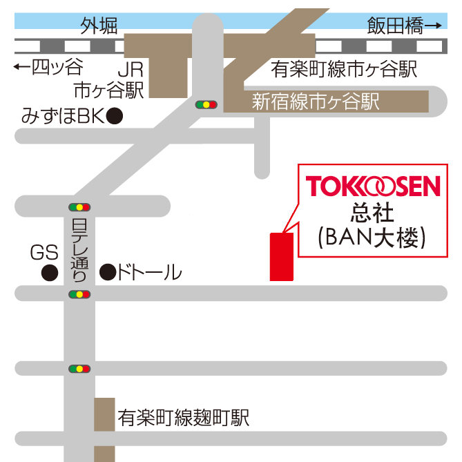 JR总武线、(地铁)都营新宿线、南北线:市谷站 步行6分